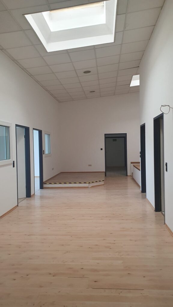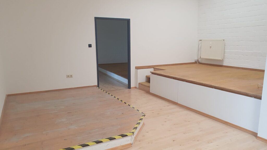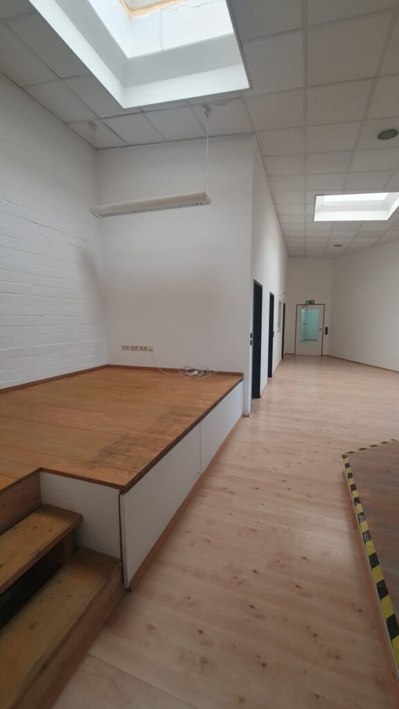 Weiterhin gibt es einen praktischen Abstellraum, einen Raum für eine Küche und einen weiteren Raum mit Wasseranschluss zur individuellen Nutzung. Eine sich im Anschluss an den Flur befindliche Fläche könnte als Lagerfläche genutzt werden.